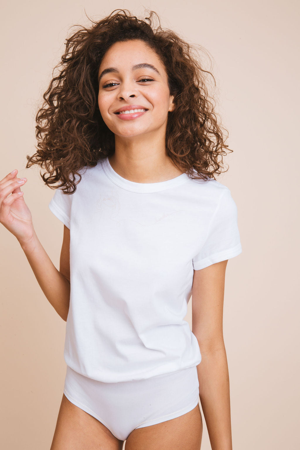 Tout doux, ce body est composé d'un tee-shirt 100% coton Supima, le cachemire du coton, et d'une culotte 90% coton bio 10% élasthanne pour un confort optimal. Tous nos tissus sont certifiés Oeko-Tex® (Label garantissant l'absence de substances nocives ou pouvant nuire à la santé et à l'environnement).